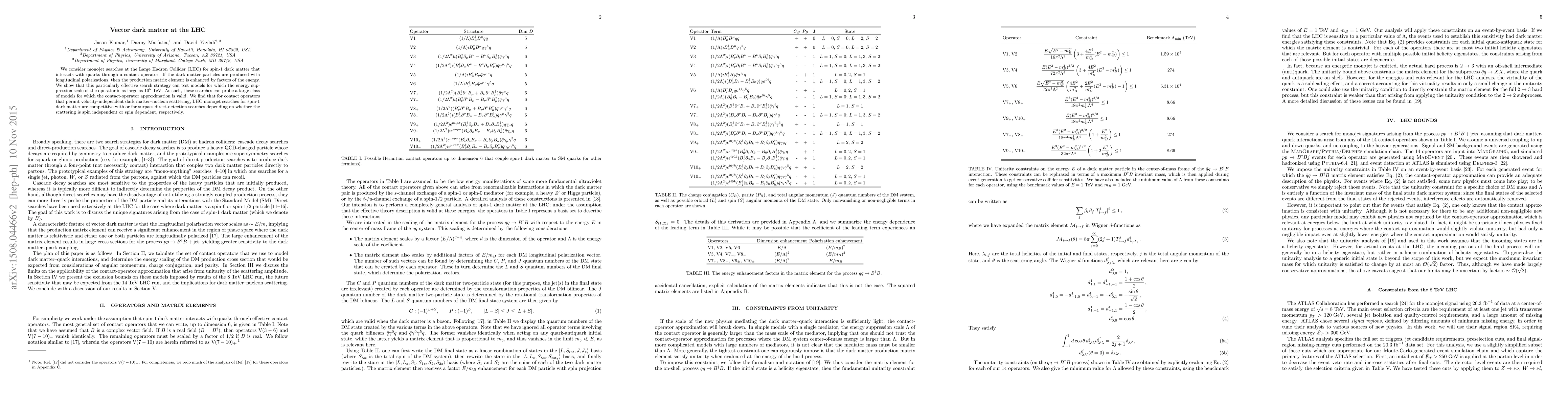 This paper explores monojet searches at the LHC for spin-1 vector dark matter interacting via contact operators, demonstrating that enhanced production from longitudinal polarizations can probe energy suppression scales up to 10^5 TeV. It concludes that LHC monojet searches can outperform direct-detection methods for both spin-independent and spin-dependent dark matter-nucleon scattering.