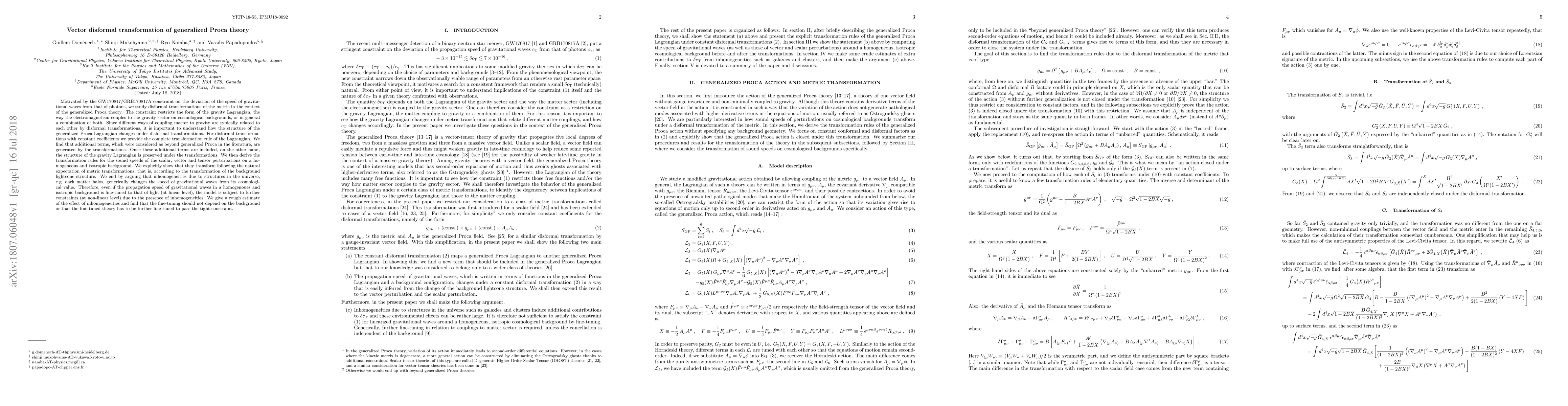 Researchers study how changes in gravitational wave speed from photons affect the Generalized Proca theory, finding that disformal transformations preserve the gravity Lagrangian's structure but introduce new terms, which can be used to estimate the fine-tuning required for a cosmological model to pass a tight constraint.