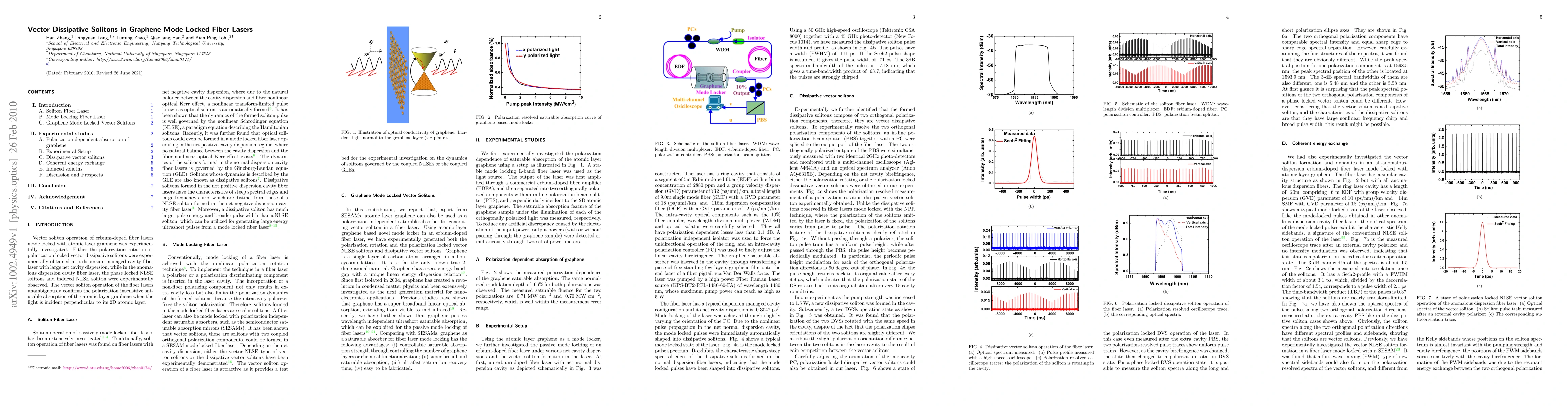 This study experimentally investigates vector soliton operations in erbium-doped fiber lasers mode-locked by atomic layer graphene, demonstrating polarization rotation or polarization locked vector solitons in cavities with large net cavity dispersion, and phase-locked NLSE solitons in anomalous dispersion configurations, confirming graphene's polarization-insensitive saturable absorption.