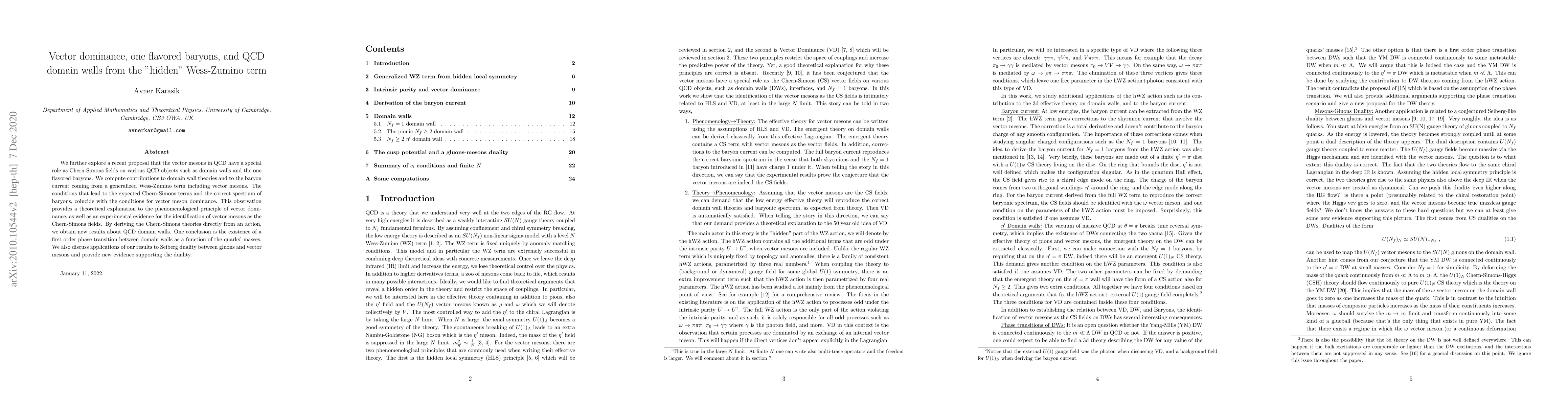We further explore a recent proposal that the vector mesons in QCD have a special role as Chern-Simons fields on various QCD objects such as domain walls and the one flavored baryons. We compute contributions to domain wall theories and to the baryon current coming from a generalized Wess-Zumino term including vector mesons. The conditions that lead to the expected Chern-Simons terms and the correct spectrum of baryons, coincide with the conditions for vector meson dominance. This observation provides a theoretical explanation to the phenomenological principle of vector dominance, as well as an experimental evidence for the identification of vector mesons as the Chern-Simons fields. By deriving the Chern-Simons theories directly from an action, we obtain new results about QCD domain walls. One conclusion is the existence of a first order phase transition between domain walls as a function of the quarks' masses. We also discuss applications of our results to Seiberg duality between gluons and vector mesons and provide new evidence supporting the duality.