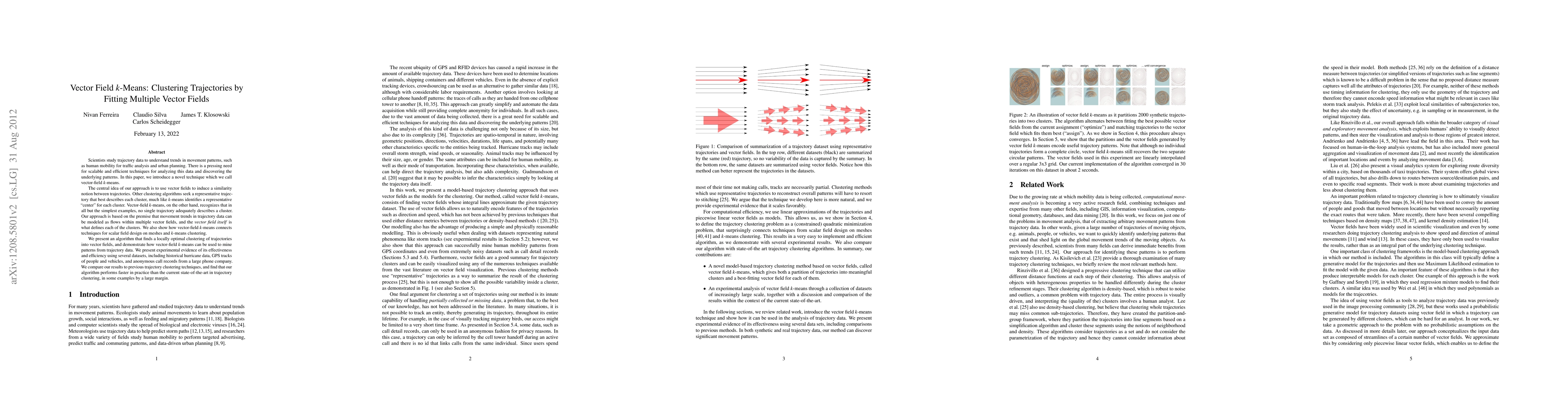 This paper introduces a novel vector-field $k$-means clustering technique for analyzing trajectory data, proposing that movement trends can be modeled as flows within multiple vector fields rather than a single representative trajectory. The method is shown to be faster and more effective than existing clustering techniques, as demonstrated by experiments on various datasets.