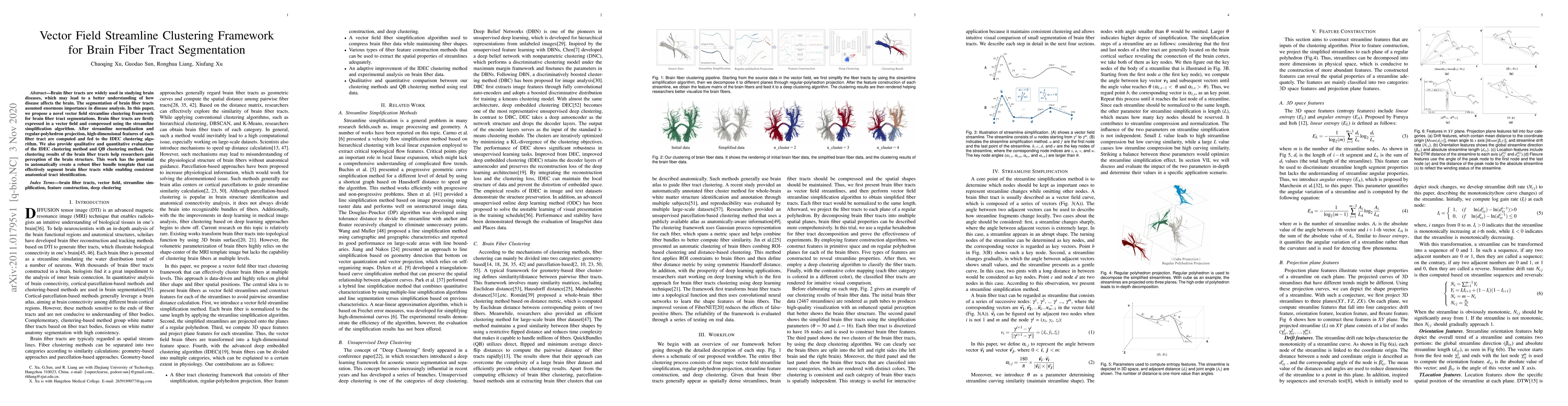 This paper introduces a novel vector field streamline clustering framework for segmenting brain fiber tracts, employing vector field representation, streamline simplification, and IDEC clustering to enhance disease analysis. The proposed method provides robust segmentation and consistent anatomical tract identification, aiding in the understanding of brain structure and disease effects.