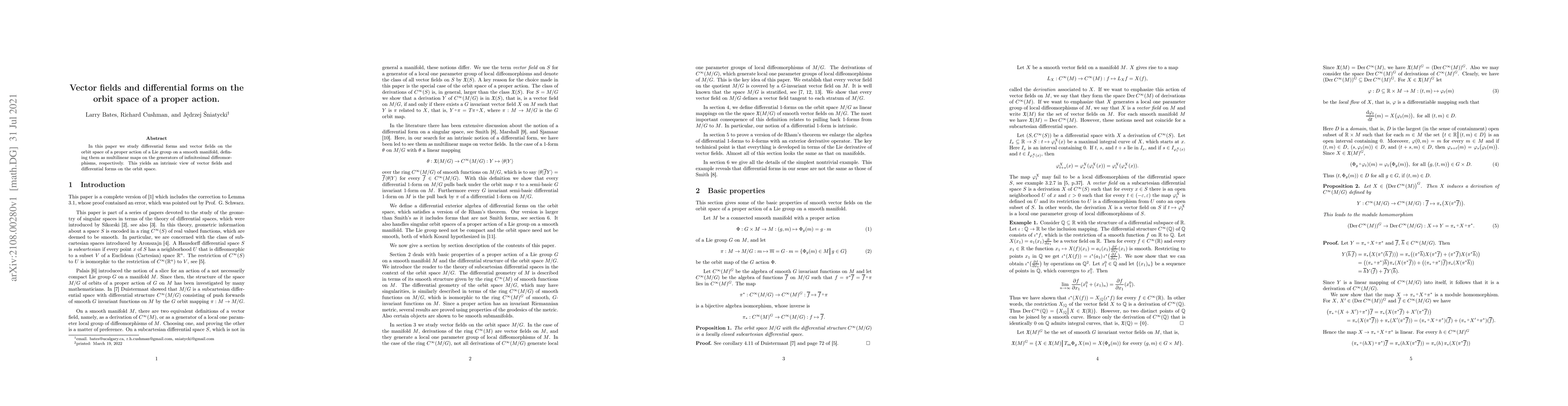 Summary: This paper defines vector fields and differential forms on the orbit space of a proper Lie group action on a smooth manifold, viewing them intrinsically through multilinear maps on infinitesimal diffeomorphism generators.