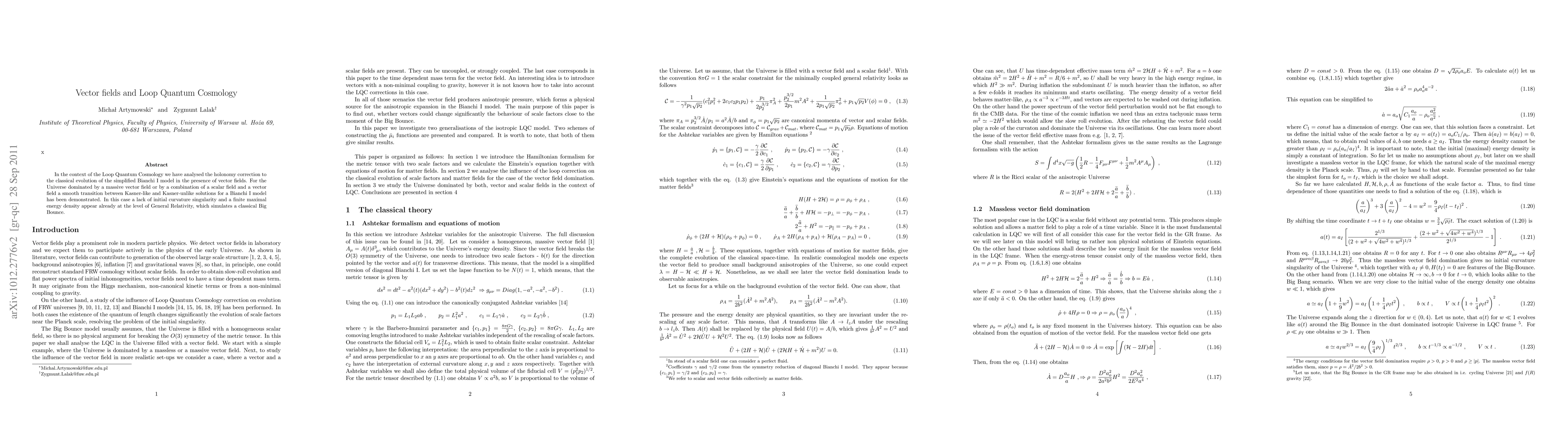 In the context of the Loop Quantum Cosmology we have analysed the holonomy correction to the classical evolution of the simplified Bianchi I model in the presence of vector fields. For the Universe dominated by a massive vector field or by a combination of a scalar field and a vector field a smooth transition between Kasner-like and Kasner-unlike solutions for a Bianchi I model has been demonstrated. In this case a lack of initial curvature singularity and a finite maximal energy density appear already at the level of General Relativity, which simulates a classical Big Bounce.