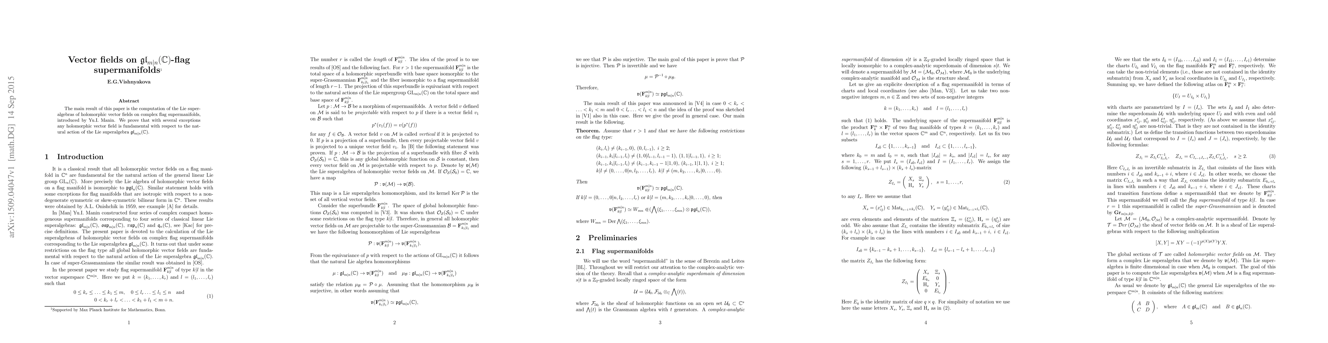 Summary: This paper computes the Lie superalgebras of holomorphic vector fields on complex flag supermanifolds. It demonstrates that, barring exceptions, any holomorphic vector field is fundamental under the natural action of $\mathfrak{gl}_{m|n}(\mathbb{C})$.