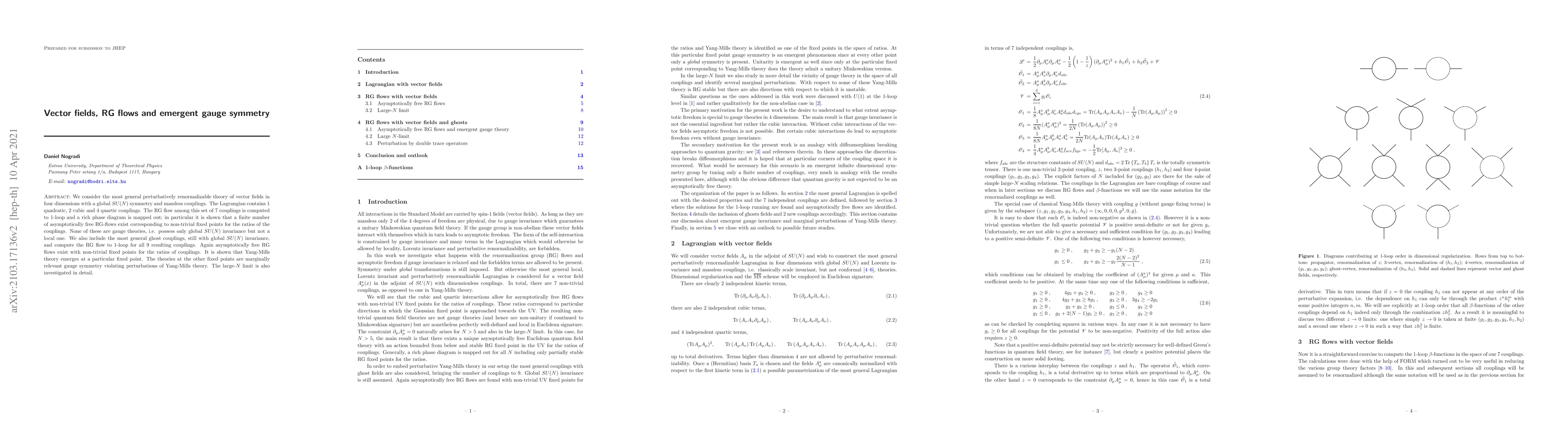 This paper studies the renormalization group (RG) flows of a general perturbatively renormalizable vector field theory in four dimensions with global SU(N) symmetry, revealing asymptotically free flows and non-trivial fixed points. It demonstrates that Yang-Mills theory emerges at a specific fixed point, while other flows represent gauge symmetry violating perturbations.