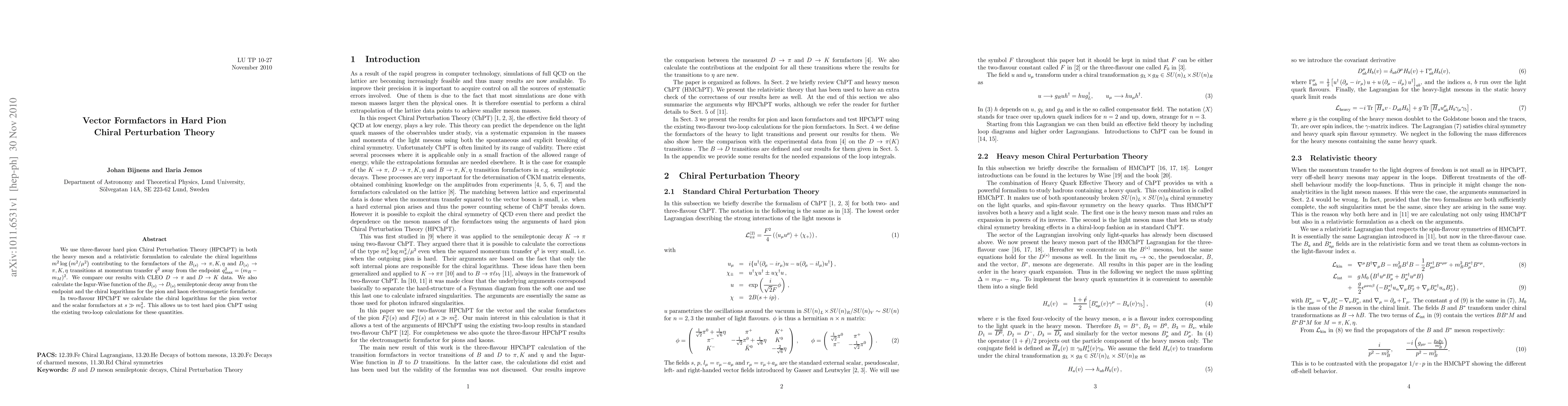 We use three-flavour hard pion Chiral Perturbation Theory (HPChPT) in both the heavy meson and a relativistic formulation to calculate the chiral logarithms $m^2\log(m^2/\mu^2)$ contributing to the formfactors of the $B_{(s)}\rightarrow \pi,K,\eta$ and $D_{(s)}\rightarrow \pi,K,\eta$ transitions at momentum transfer $q^2$ away from the endpoint $q^2_\mathrm{max}=(m_B-m_M)^2$. We compare our results with CLEO $D\to\pi$ and $D\to K$ data. We also calculate the Isgur-Wise function of the $B_{(s)}\rightarrow D_{(s)}$ semileptonic decay away from the endpoint and the chiral logarithms for the pion and kaon electromagnetic formfactor. In two-flavour HPChPT we calculate the chiral logarithms for the pion vector and the scalar formfactors at $s\gg m_\pi^2$. This allows us to test hard pion ChPT using the existing two-loop calculations for these quantities.