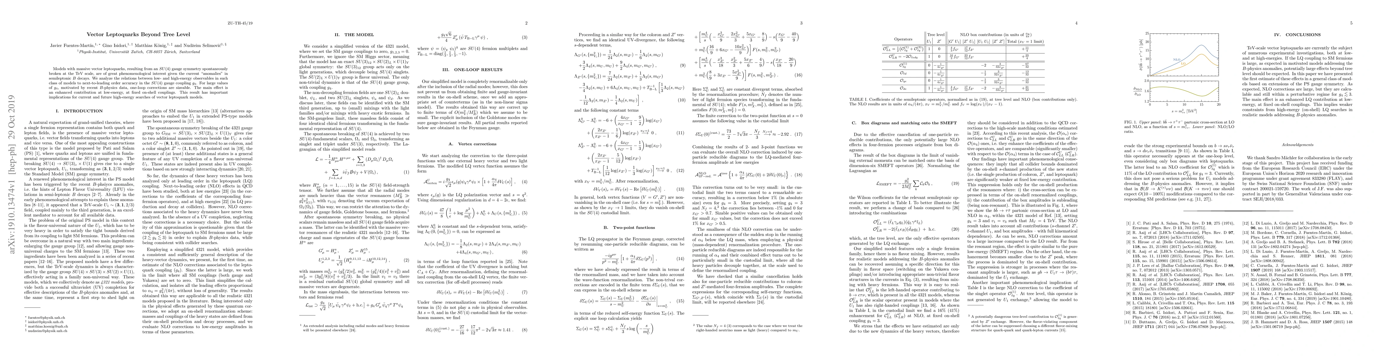 Research explores vector leptoquarks with SU(4) symmetry, finding that large couplings lead to significant one-loop corrections that enhance low-energy observables.