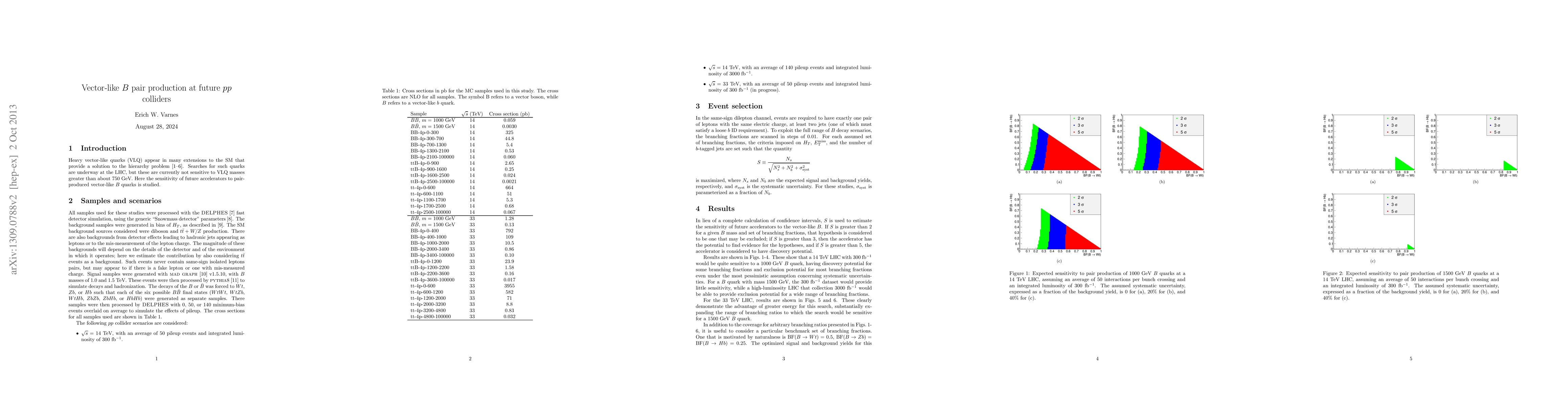 The capabilities of 14 TeV and 33 TeV pp colliders for discovering vector-like B quarks is examined. These studies were carried out as part of the Snowmass Community Planning exercise.