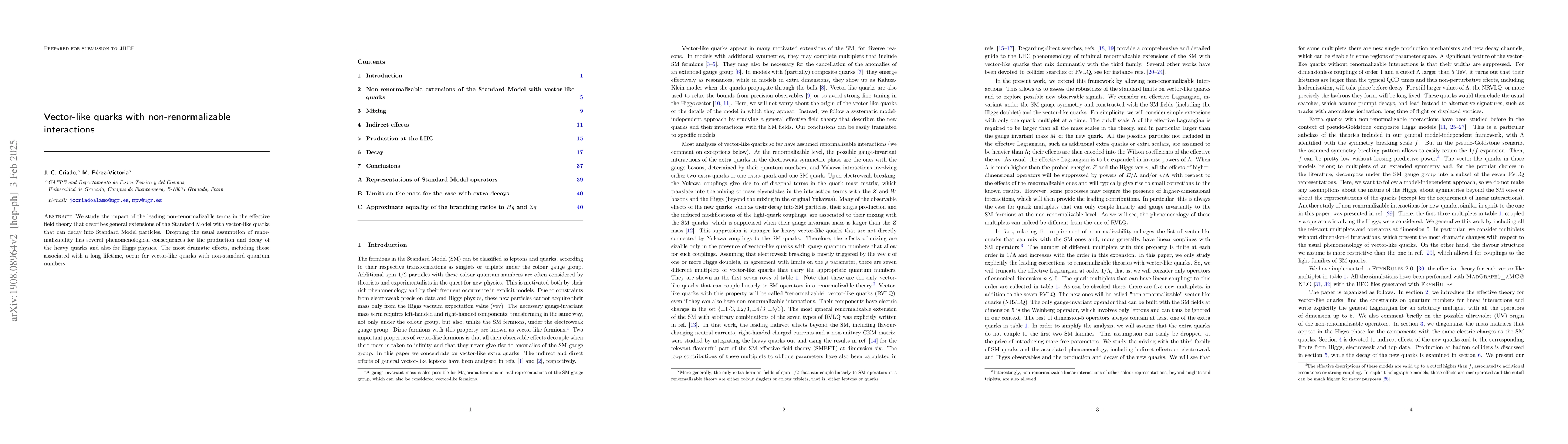 The work distinguishes between vector-like quarks that allow for renormalizable linear interactions and those that do not, examining how dimension-5 interactions modify their phenomenology, especially in strongly-coupled UV completions.