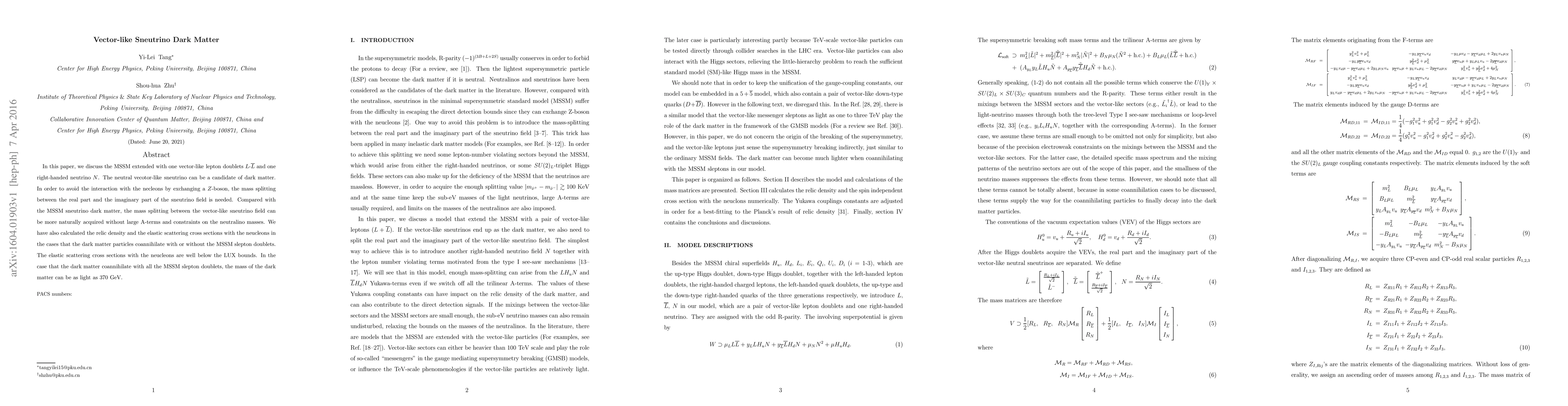 Researchers propose a new dark matter candidate, the vector-like sneutrino, which can naturally acquire mass without large A-terms and constraints on neutralino masses. The proposed dark matter particle has an elastic scattering cross section with nucleons below LUX bounds.