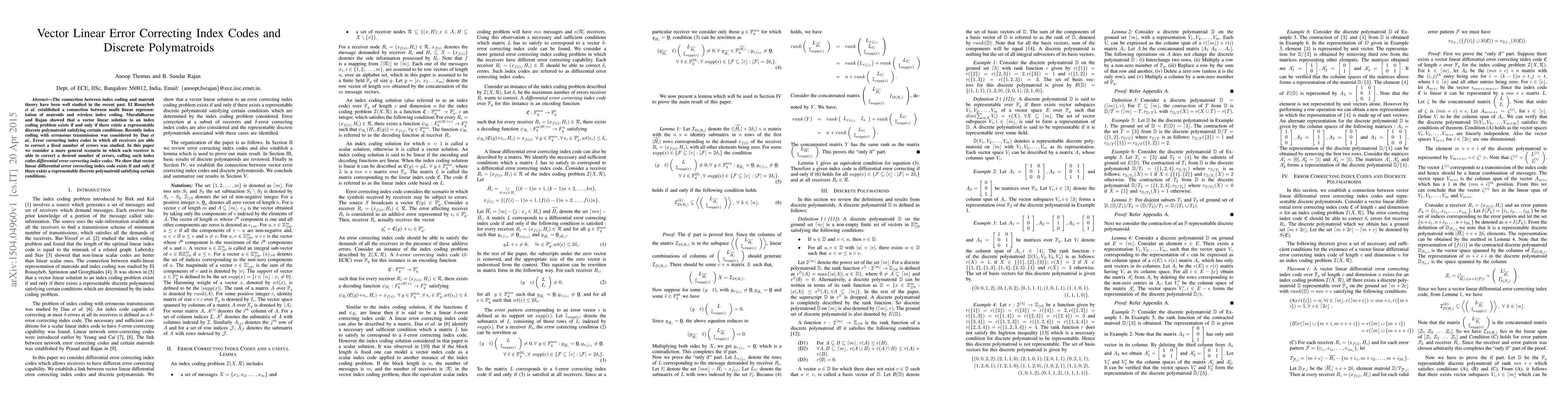 This paper explores the existence of vector linear differential error correcting index codes, demonstrating that their existence is contingent on the presence of a representable discrete polymatroid meeting specific conditions, extending previous work on error correcting index codes.
