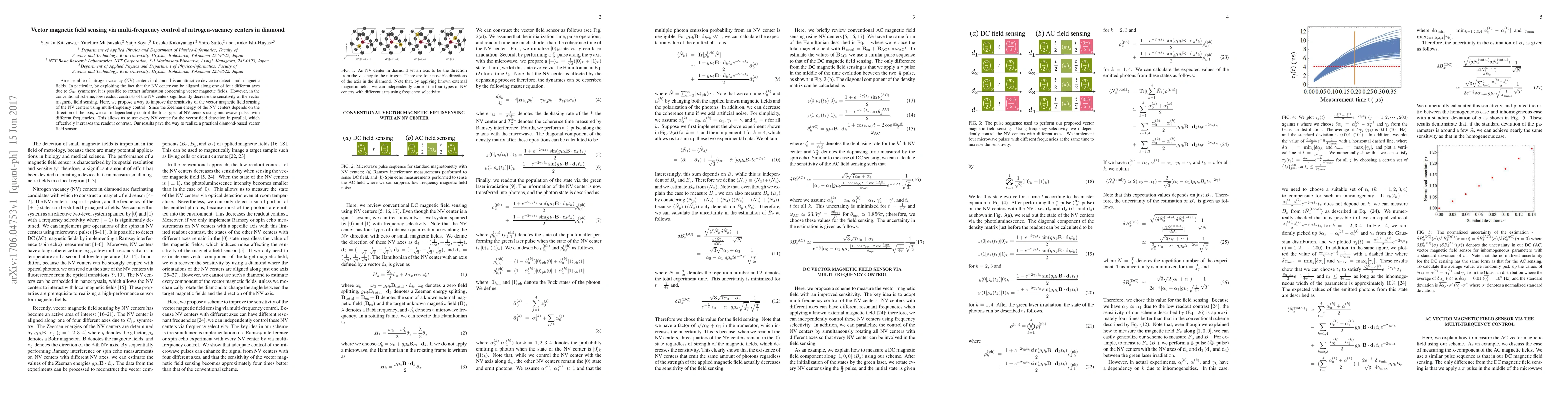 This paper proposes a method to enhance the sensitivity of vector magnetic field sensing using nitrogen-vacancy (NV) centers in diamond by employing multi-frequency control. By independently controlling the four NV center axes with different microwave frequencies, the method increases readout contrast and paves the way for a practical diamond-based vector field sensor.