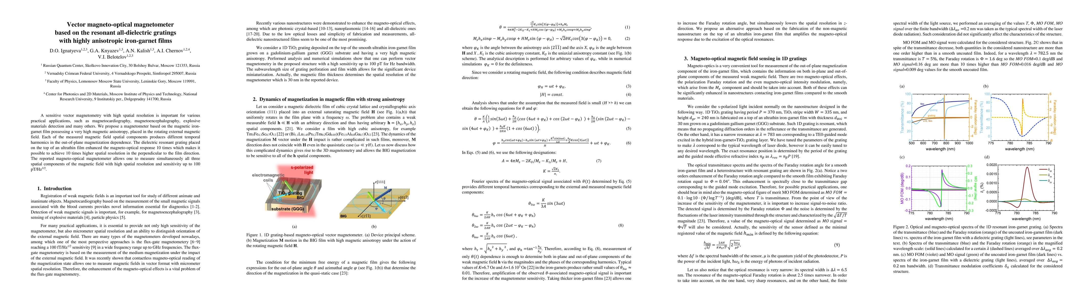 A new vector magnetometer with high spatial resolution was developed using resonant all-dielectric gratings and highly anisotropic iron-garnet films, achieving sensitivity up to 100 pT/Hz^(1/2) in measuring magnetic field spatial components.