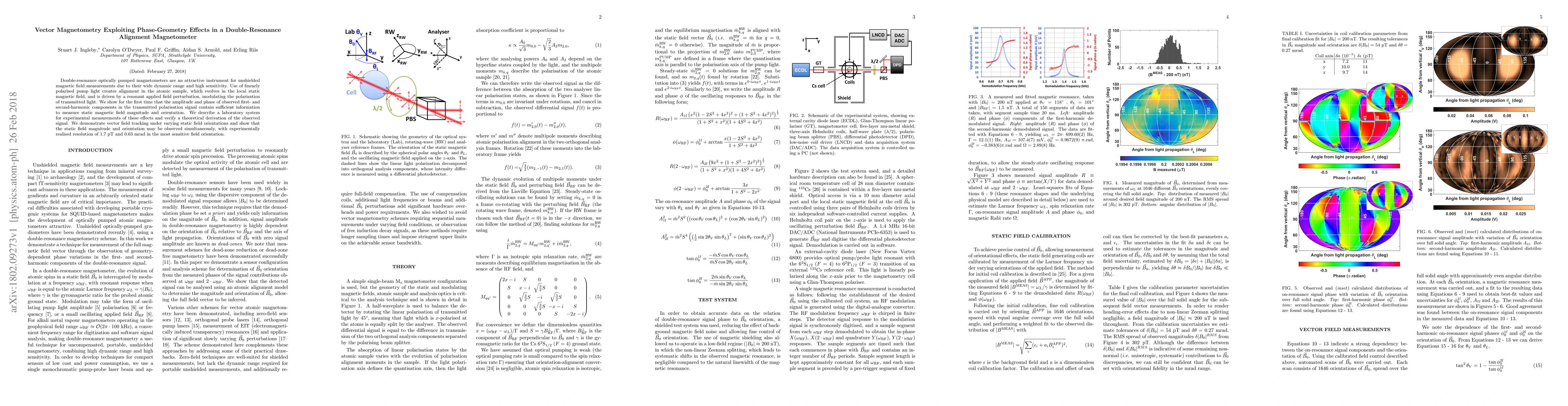 This paper presents a novel double-resonance optically pumped magnetometer that leverages phase-geometry effects to measure both the magnitude and orientation of static magnetic fields with high sensitivity and resolution. The system demonstrates simultaneous tracking of magnetic field vectors with a resolution of 1.7 pT and 0.63 mrad.