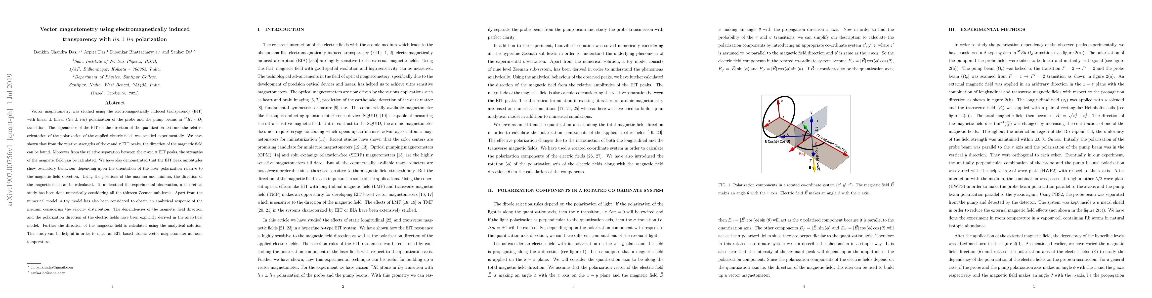Researchers developed a method to measure magnetic fields using electromagnetically induced transparency in rubidium atoms, allowing for the creation of an atomic vector magnetometer at room temperature.