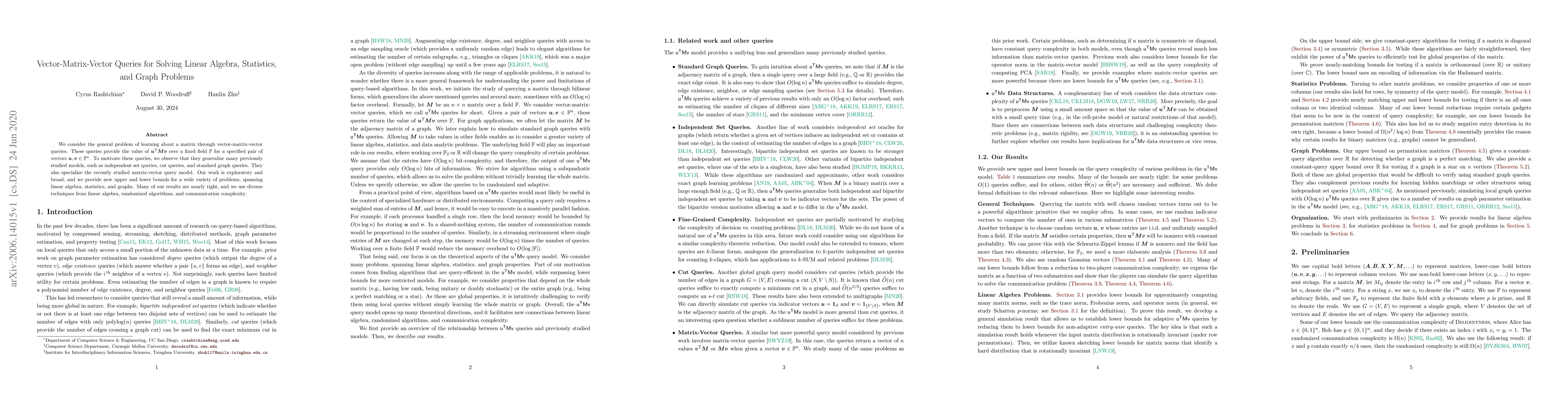 Researchers develop a new framework for solving linear algebra, statistics, and graph problems using vector-matrix-vector queries, providing new bounds and insights into query complexity.