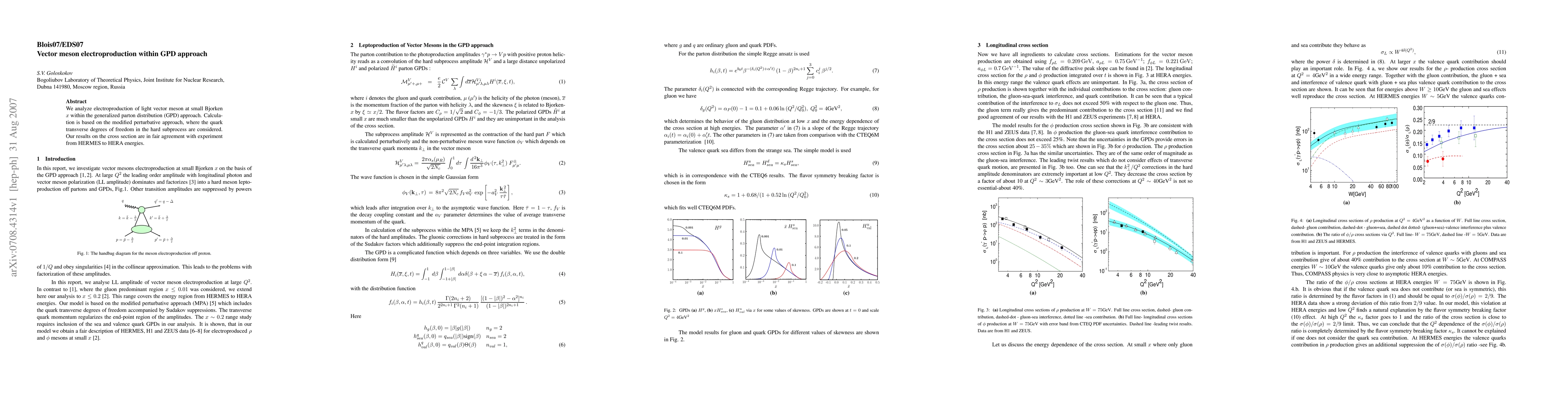 This paper investigates the electroproduction of light vector mesons at low Bjorken $x$ using the GPD approach, employing a modified perturbative method that considers quark transverse degrees of freedom. The calculated cross sections align well with experimental data from HERMES to HERA energies.