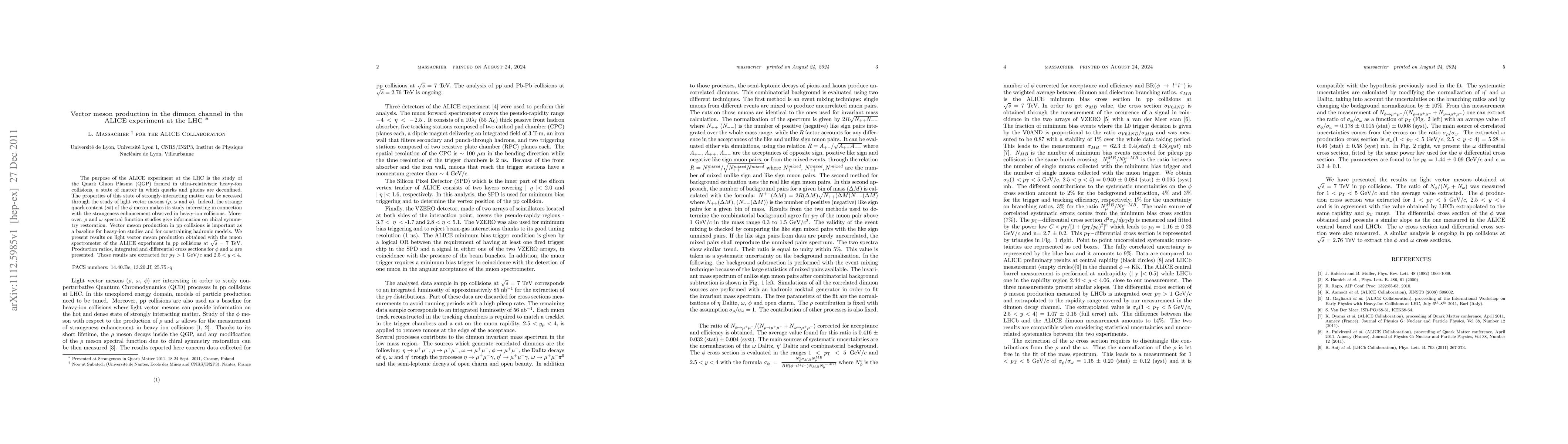 The ALICE experiment at the LHC investigates vector meson production in proton-proton collisions to study the Quark Gluon Plasma and chiral symmetry restoration, presenting results on $\phi$ and $\omega$ mesons at $\sqrt{s}$=7 TeV. These findings provide baseline data for heavy-ion collision studies and constrain hadronic models.