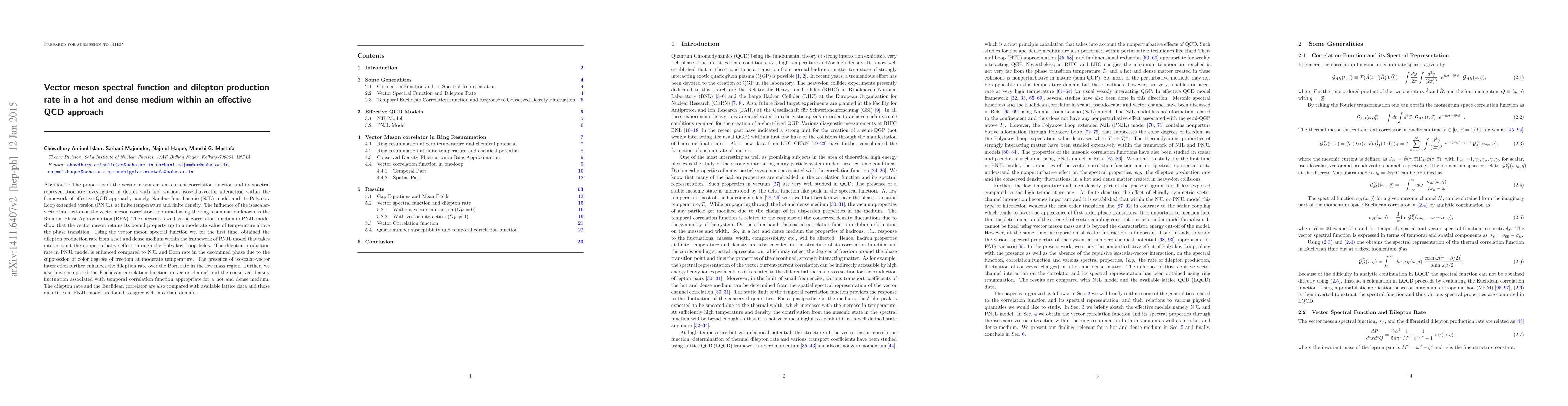 The properties of the vector meson current-current correlation function and its spectral representation are investigated in details with and without isoscalar-vector interaction within the framework of effective QCD approach, namely Nambu-Jona-Lasinio (NJL) model and its Polyakov Loop extended version (PNJL), at finite temperature and finite density. The influence of the isoscalarvector interaction on the vector meson correlator is obtained using the ring resummation known as the Random Phase Approximation (RPA). The spectral as well as the correlation function in PNJL model show that the vector meson retains its bound property up to a moderate value of temperature above the phase transition. Using the vector meson spectral function we, for the first time, obtained the dilepton production rate from a hot and dense medium within the framework of PNJL model that takes into account the nonperturbative effect through the Polyakov Loop fields. The dilepton production rate in PNJL model is enhanced compared to NJL and Born rate in the deconfined phase due to the suppression of color degrees of freedom at moderate temperature. The presence of isoscalar-vector interaction further enhances the dileption rate over the Born rate in the low mass region. Further, we also have computed the Euclidean correlation function in vector channel and the conserved density fluctuation associated with temporal correlation function appropriate for a hot and dense medium. The dilepton rate and the Euclidean correlator are also compared with available lattice data and those quantities in PNJL model are found to agree well in certain domain.