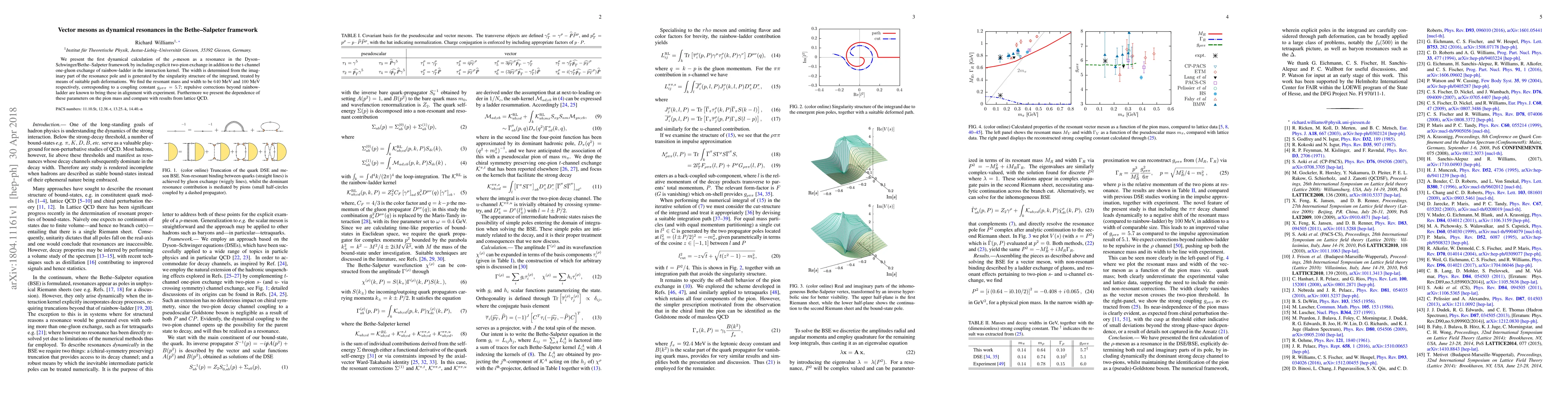 Researchers used a complex mathematical framework to simulate the properties of the rho-meson particle, finding its mass and width to be 640 MeV and 100 MeV, respectively, in good agreement with experimental results.