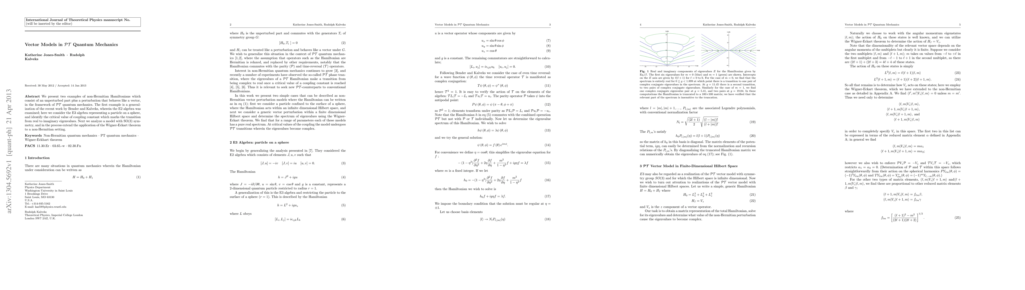We present two examples of non-Hermitian Hamiltonians which consist of an unperturbed part plus a perturbation that behaves like a vector, in the framework of PT quantum mechanics. The first example is a generalization of the recent work by Bender and Kalveks, wherein the E2 algebra was examined; here we consider the E3 algebra representing a particle on a sphere, and identify the critical value of coupling constant which marks the transition from real to imaginary eigenvalues. Next we analyze a model with SO(3) symmetry, and in the process extend the application of the Wigner-Eckart theorem to a non-Hermitian setting.