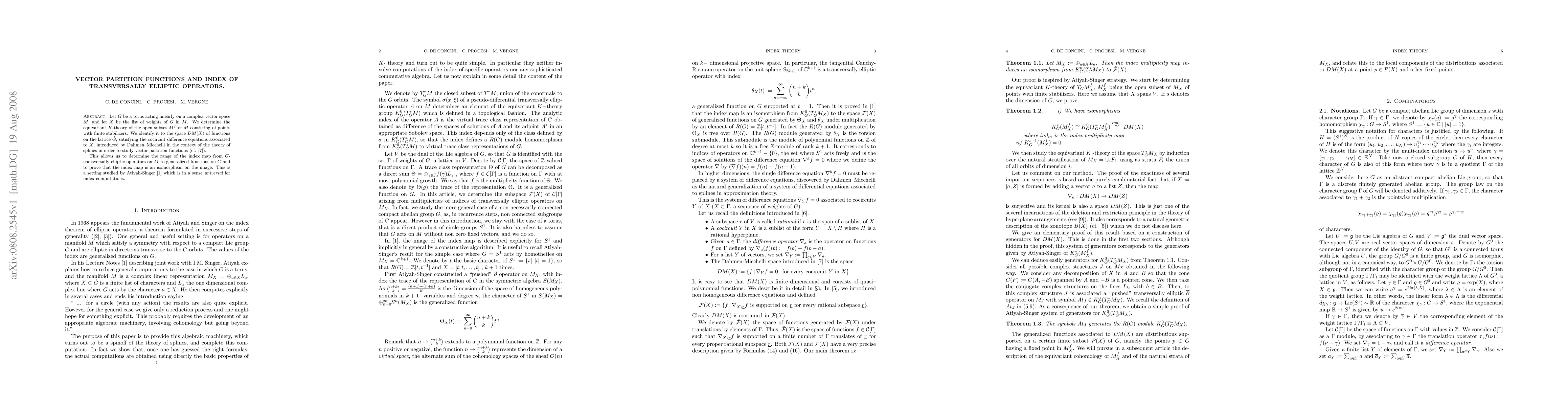 Let G be a torus acting linearly on a complex vector space M, and let X be the list of weights of G in M. We determine the equivariant K-theory of the open subset of M consisting of points with finite stabilizers. We identify it to the space DM(X) of functions on the lattice of weights of G, satisfying the cocircuit difference equations associated to X, introduced by Dahmen--Micchelli in the context of the theory of splines in order to study vector partition functions. This allows us to determine the range of the index map from G-transversally elliptic operators on M to generalized functions on G and to prove that the index map is an isomorphism on the image. This is a setting studied by Atiyah-Singer which is in a sense universal for index computations.