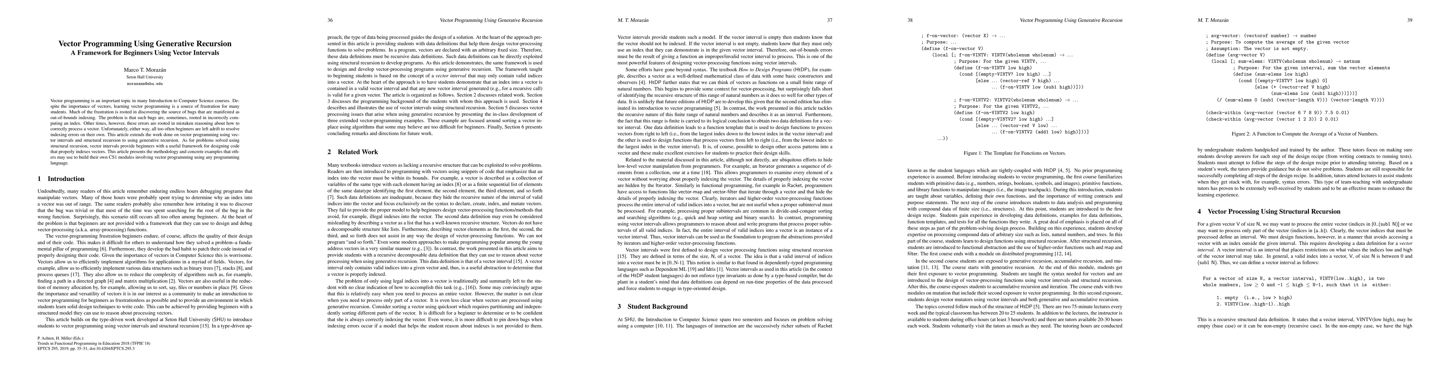 This research paper introduces a new approach to teaching vector programming using generative recursion, providing students with a framework for designing code that correctly indexes vectors.