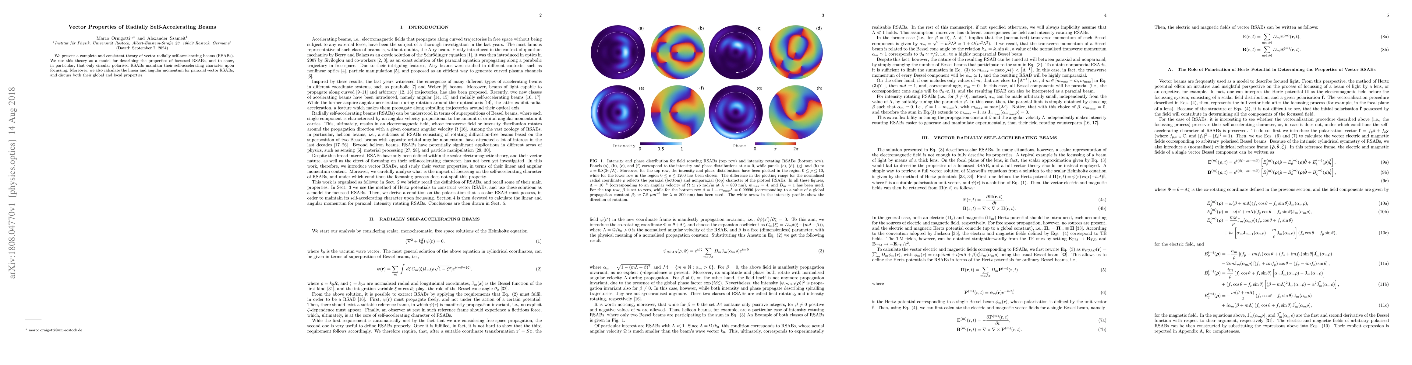 We present a complete and consistent theory of vector radially self-accelerating beams (RSABs). We use this theory as a model for describing the properties of focussed RSABs, and to show, in particular, that only circular polarised RSABs maintain their self-accelerating character upon focussing. Moreover, we also calculate the linear and angular momentum for paraxial vector RSABs, and discuss both their global and local properties.