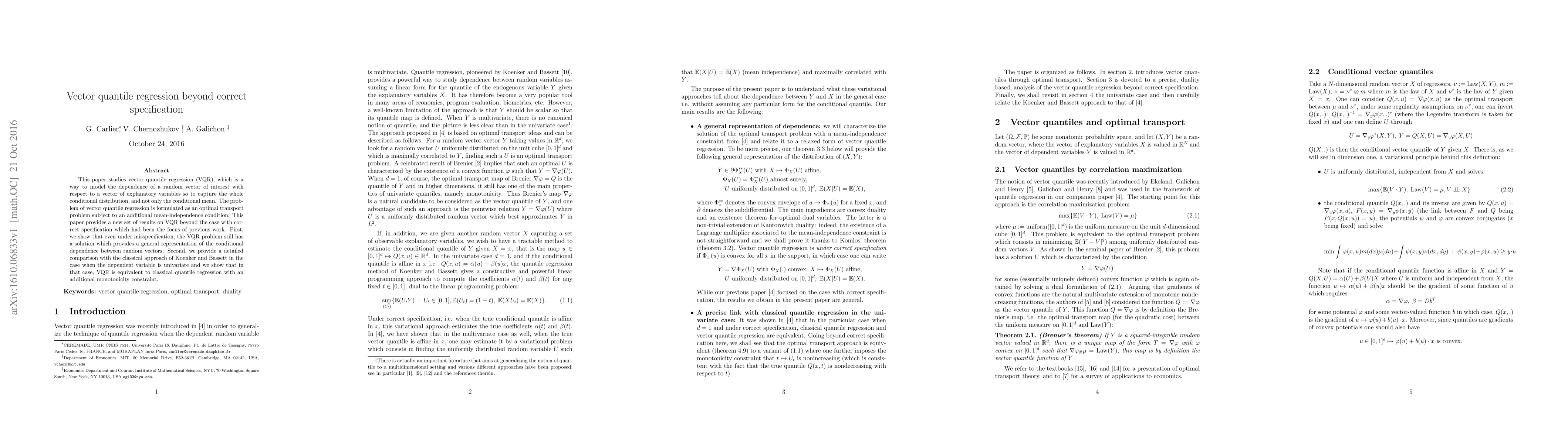 This paper explores vector quantile regression (VQR) beyond correct specification, demonstrating that VQR still has a solution under misspecification, providing a general representation of conditional dependence. It also compares VQR with classical quantile regression, showing equivalence under univariate dependent variables with an added monotonicity constraint.
