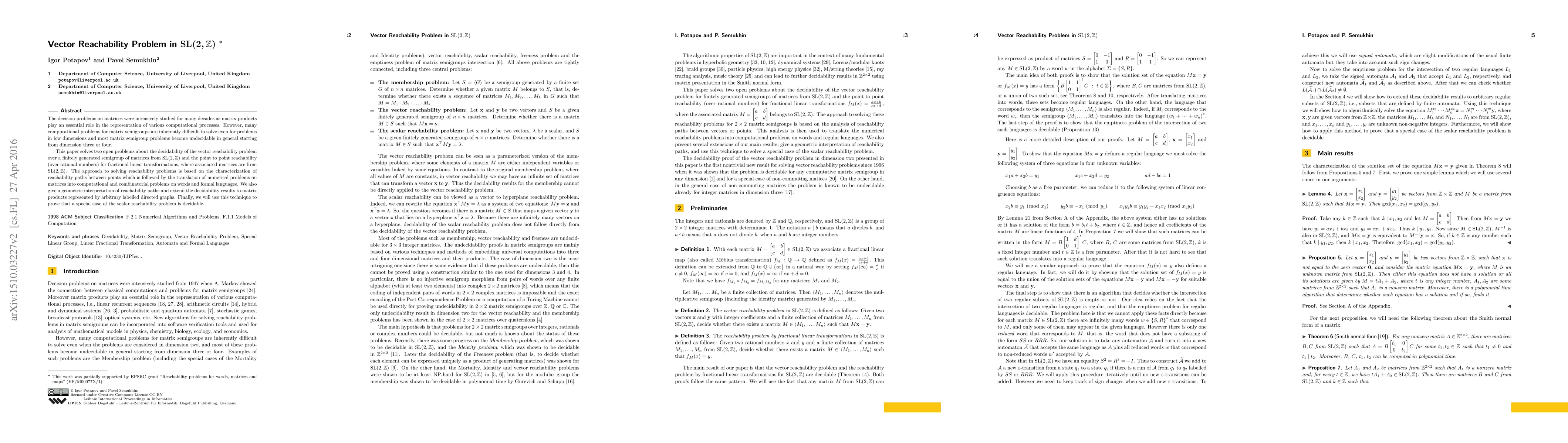 This paper resolves two open problems regarding the decidability of vector reachability in $\mathrm{SL}(2,\mathbb{Z})$ and point-to-point reachability for fractional linear transformations, employing a method that translates matrix problems into combinatorial problems on words and formal languages.