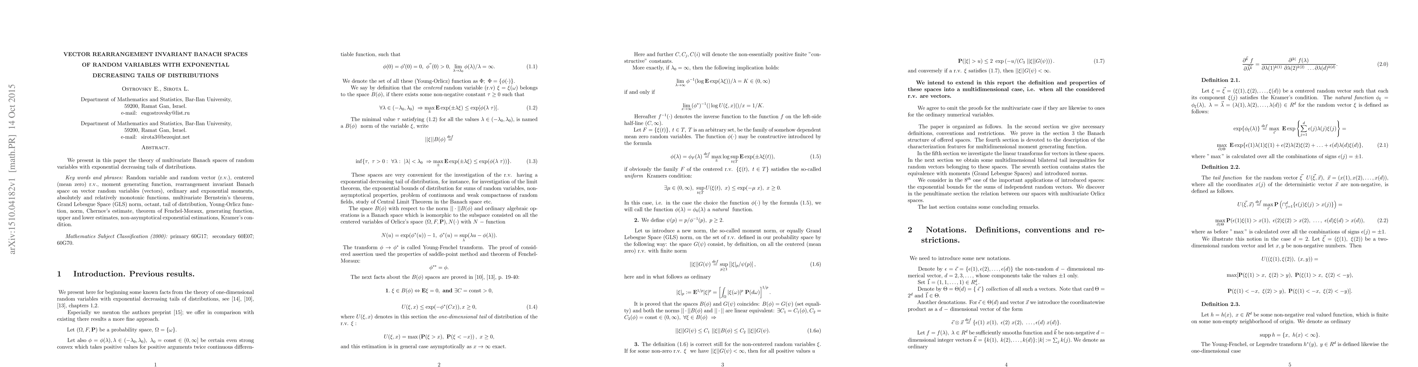 Summary: This paper explores the theory of multivariate Banach spaces for random variables characterized by exponentially decreasing tails, establishing their vector rearrangement invariance properties.