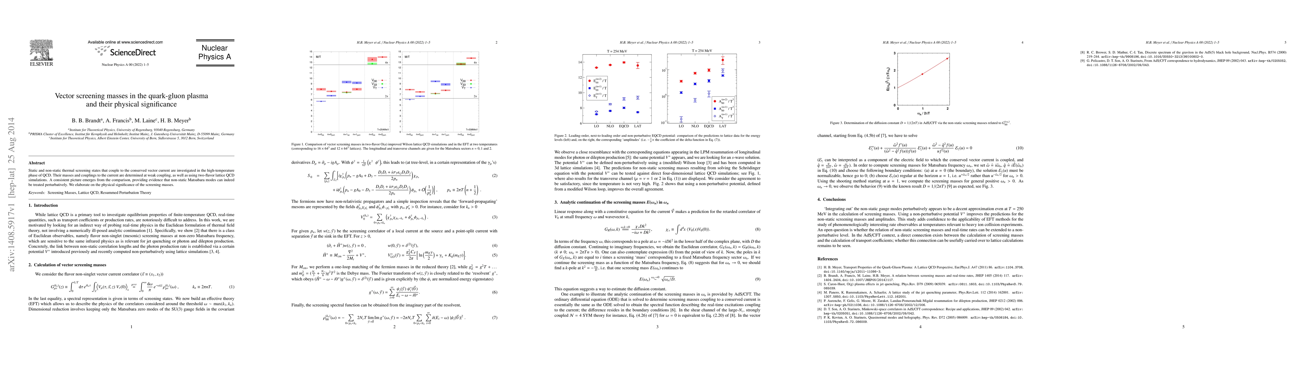 Static and non-static thermal screening states that couple to the conserved vector current are investigated in the high-temperature phase of QCD. Their masses and couplings to the current are determined at weak coupling, as well as using two-flavor lattice QCD simulations. A consistent picture emerges from the comparison, providing evidence that non-static Matsubara modes can indeed be treated perturbatively. We elaborate on the physical significance of the screening masses.