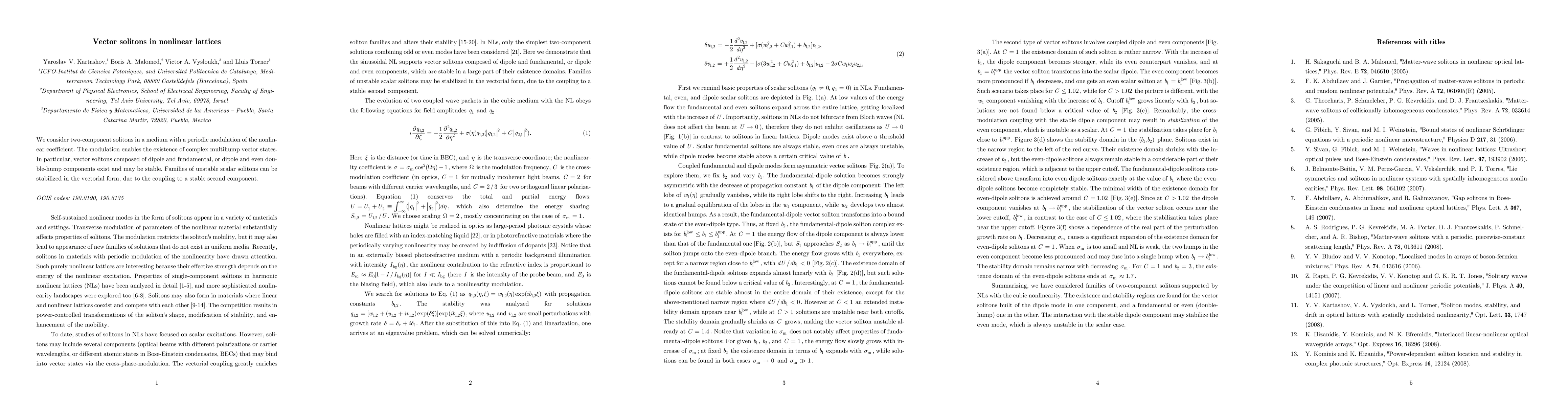 This paper explores two-component solitons in a periodically modulated nonlinear lattice, revealing the existence of stable complex multihump vector states, including dipole and fundamental, or dipole and double-hump configurations, and the stabilization of unstable scalar solitons through vector coupling.
