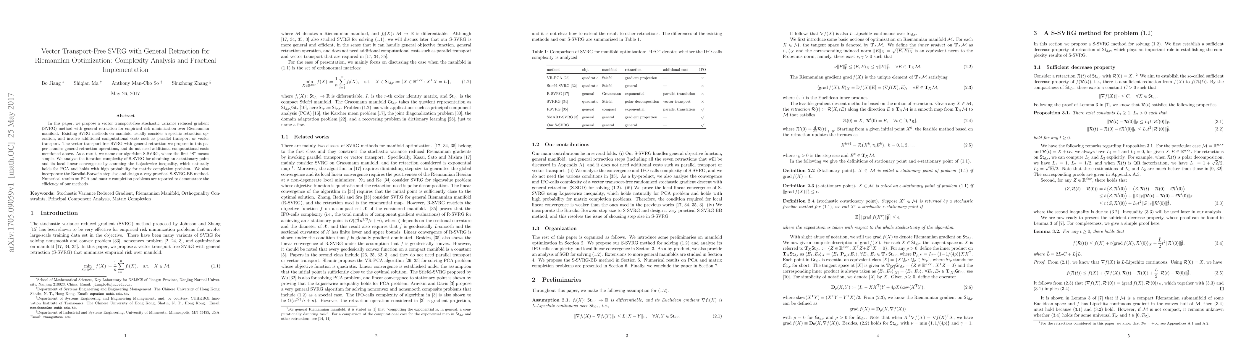 This paper introduces a vector transport-free SVRG method with general retraction for Riemannian optimization, named S-SVRG, which avoids additional computational costs. The authors analyze its complexity and convergence, and demonstrate its efficiency through practical implementations on PCA and matrix completion problems.