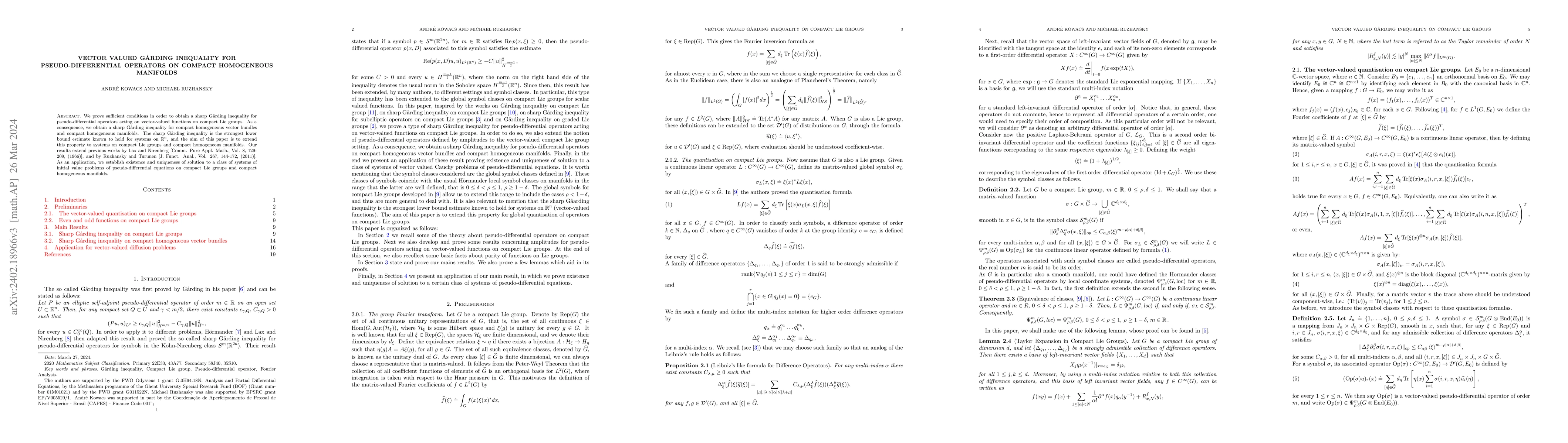 This paper proves sufficient conditions for a sharp Gårding inequality for pseudo-differential operators on compact homogeneous manifolds, extending known results to these settings and establishing the existence and uniqueness of solutions for related pseudo-differential equations.
