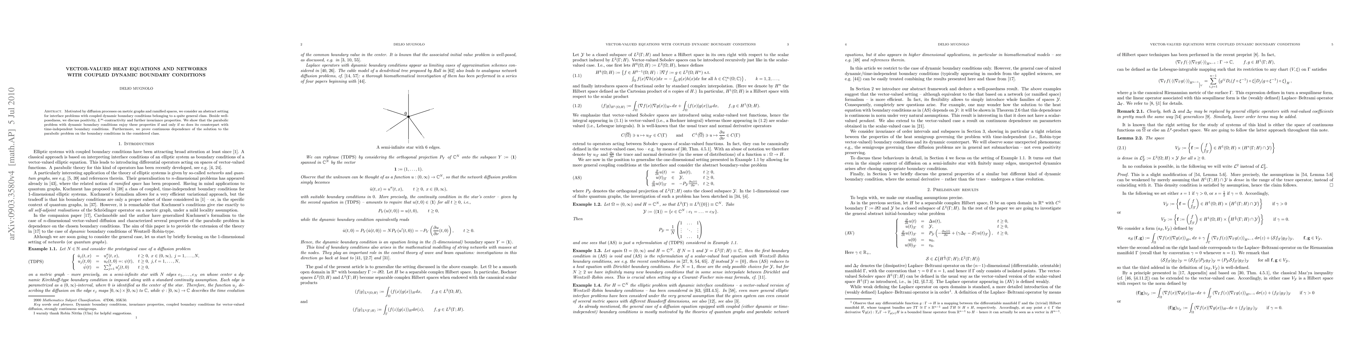 Motivated by diffusion processes on metric graphs and ramified spaces, we consider an abstract setting for interface problems with coupled dynamic boundary conditions belonging to a quite general class. Beside well-posedness, we discuss positivity, $L^\infty$-contractivity and further invariance properties. We show that the parabolic problem with dynamic boundary conditions enjoy these properties if and only if so does its counterpart with time-independent boundary conditions. Furthermore, we prove continuous dependence of the solution to the parabolic problem on the boundary conditions in the considered class.