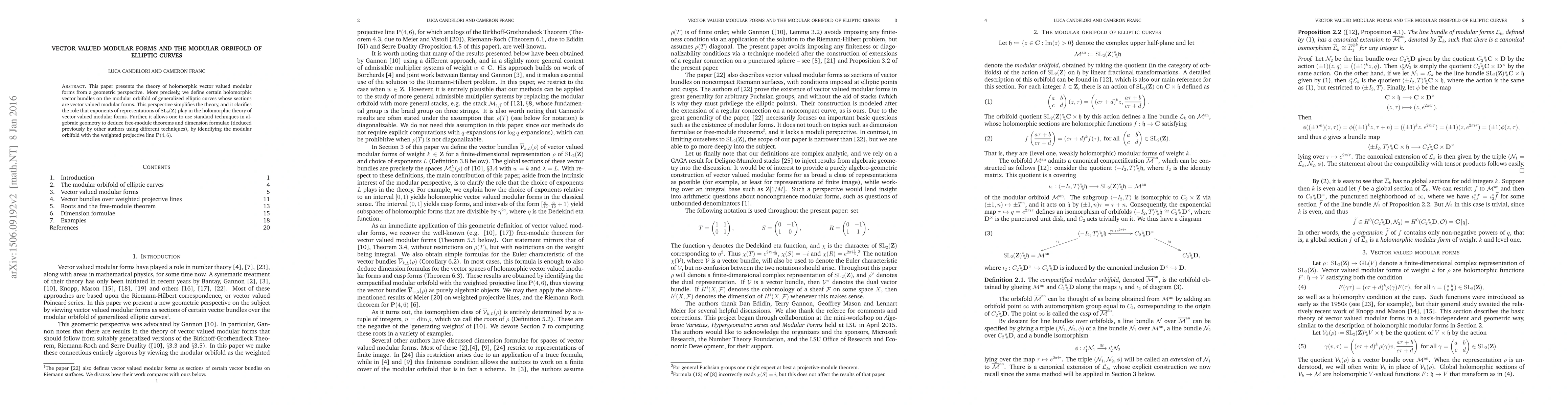 This paper develops a geometric theory of holomorphic vector valued modular forms by defining vector bundles on the modular orbifold of generalized elliptic curves, clarifying the role of SL_2(Z) representations, and using algebraic geometry to derive free-module theorems and dimension formulae, identifying the modular orbifold with P(4, 6).