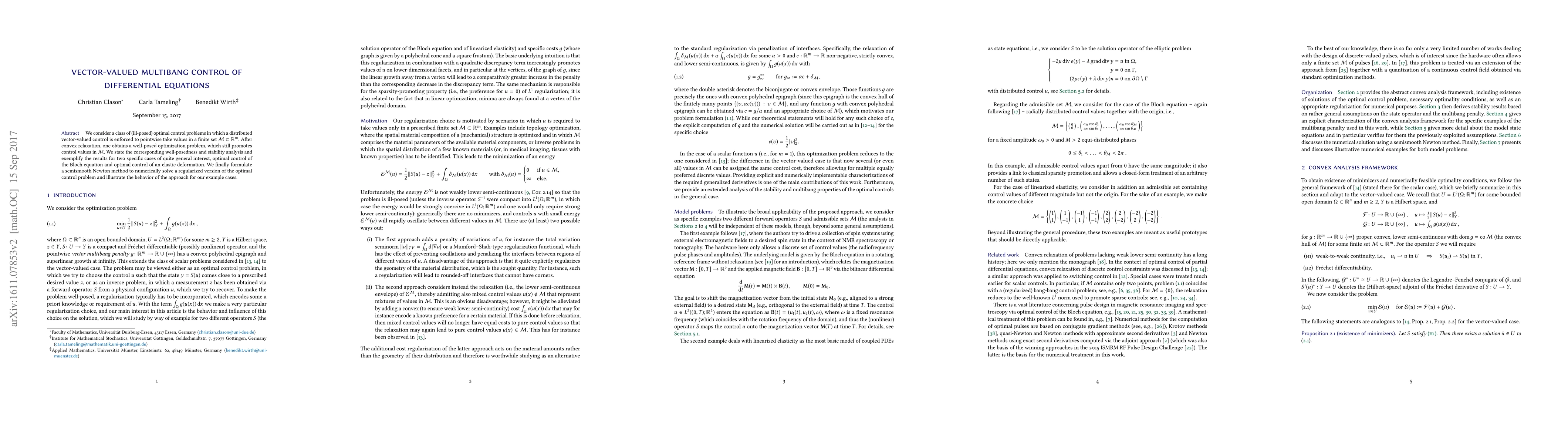 We consider a class of (ill-posed) optimal control problems in which a distributed vector-valued control is enforced to pointwise take values in a finite set $\mathcal{M}\subset\mathbb{R}^m$. After convex relaxation, one obtains a well-posed optimization problem, which still promotes control values in $\mathcal{M}$. We state the corresponding well-posedness and stability analysis and exemplify the results for two specific cases of quite general interest, optimal control of the Bloch equation and optimal control of an elastic deformation. We finally formulate a semismooth Newton method to numerically solve a regularized version of the optimal control problem and illustrate the behavior of the approach for our example cases.