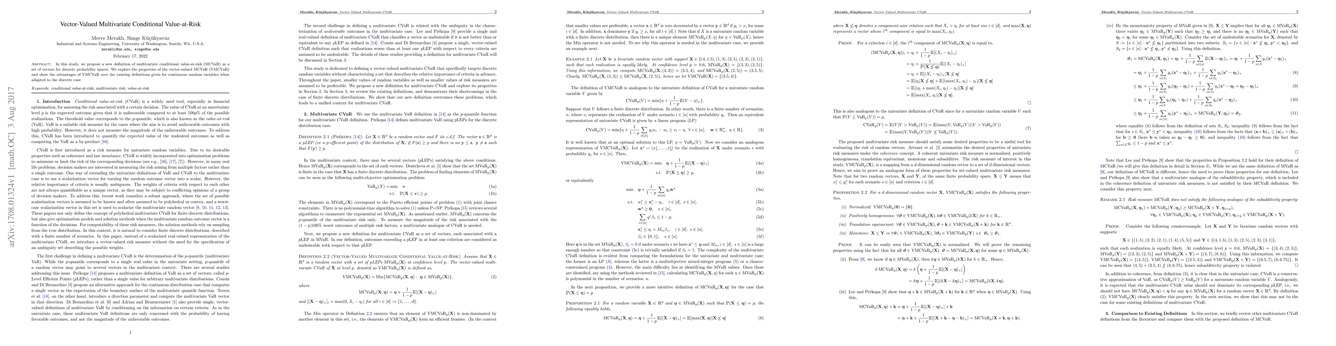 This paper introduces vector-valued multivariate conditional value-at-risk (VMCVaR) as a set of vectors for discrete probability spaces, demonstrating its advantages over existing continuous definitions in the discrete context.