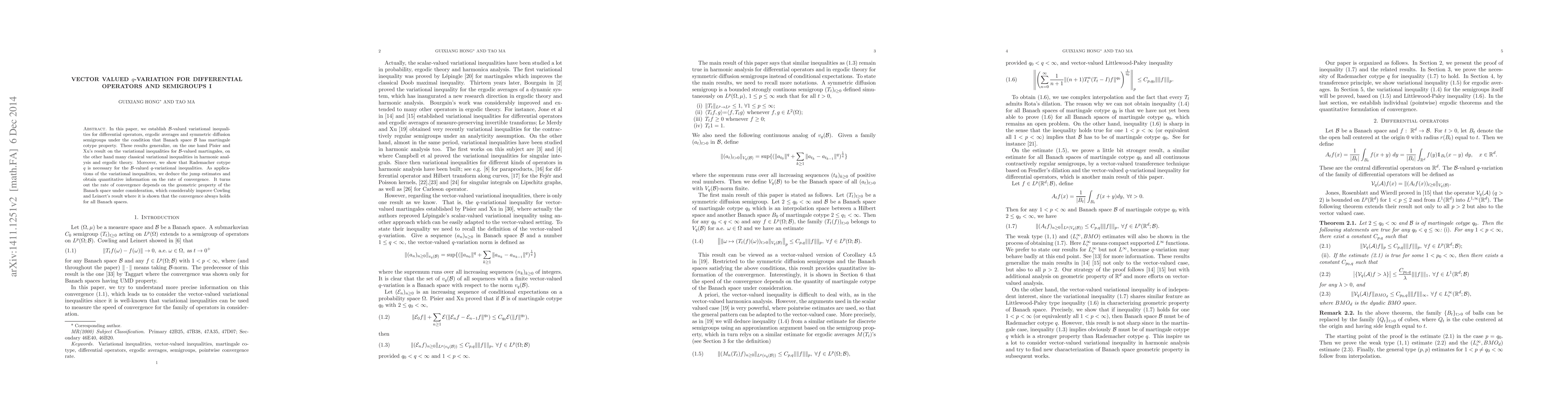 In this paper, we establish $\mathcal B$-valued variational inequalities for differential operators, ergodic averages and symmetric diffusion semigroups under the condition that Banach space $\mathcal B$ has martingale cotype property. These results generalize, on the one hand Pisier and Xu's result on the variational inequalities for $\mathcal B$-valued martingales, on the other hand many classical variational inequalities in harmonic analysis and ergodic theory. Moreover, we show that Rademacher cotype $q$ is necessary for the $\mathcal B$-valued $q$-variational inequalities. As applications of the variational inequalities, we deduce the jump estimates and obtain quantitative information on the rate of convergence. It turns out the rate of convergence depends on the geometric property of the Banach space under consideration, which considerably improve Cowling and Leinert's result where it is shown that the convergence always holds for all Banach spaces.