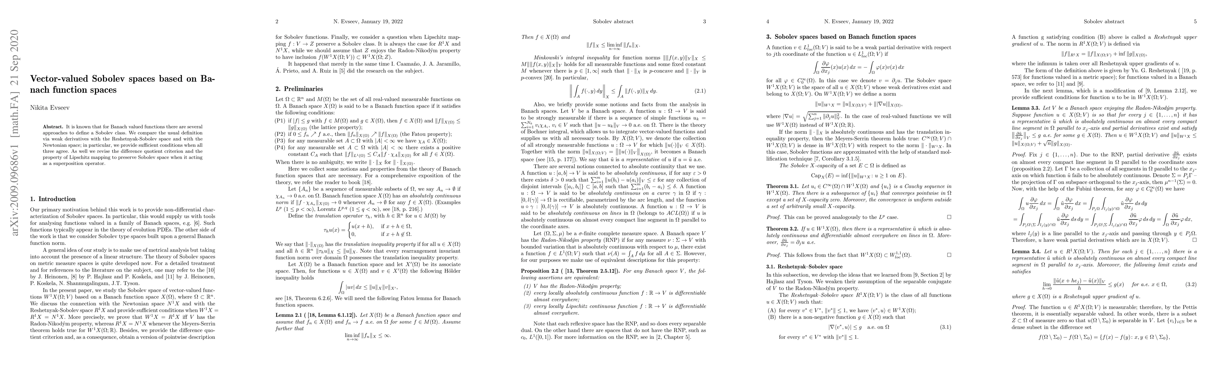 This paper compares different definitions of Sobolev spaces for Banach-valued functions, including weak derivatives, Reshetnyak-Sobolev spaces, and Newtonian spaces, and identifies conditions under which they coincide. It also examines the Lipschitz mapping property and its preservation of Sobolev space through superposition operators.