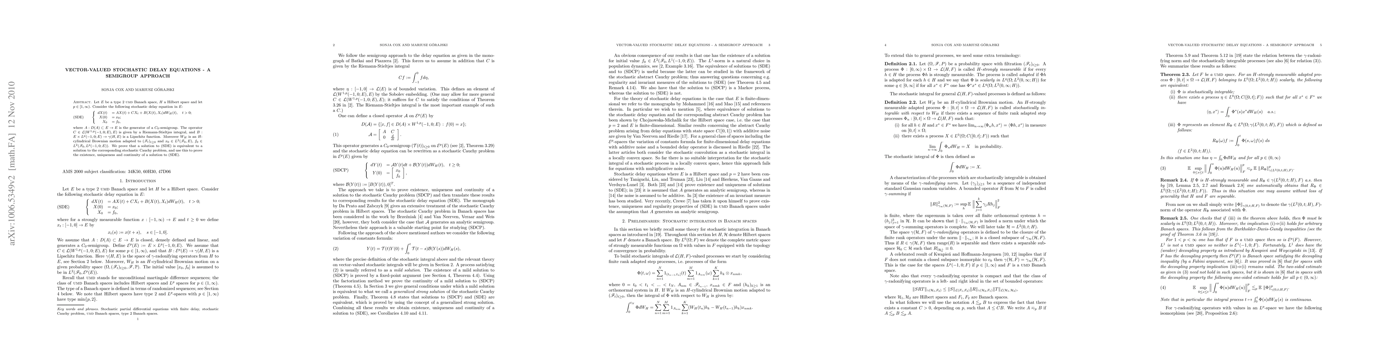 This research paper proves the existence, uniqueness, and continuity of solutions to a stochastic delay equation using a semigroup approach, which establishes a link between the equation and a corresponding stochastic Cauchy problem.