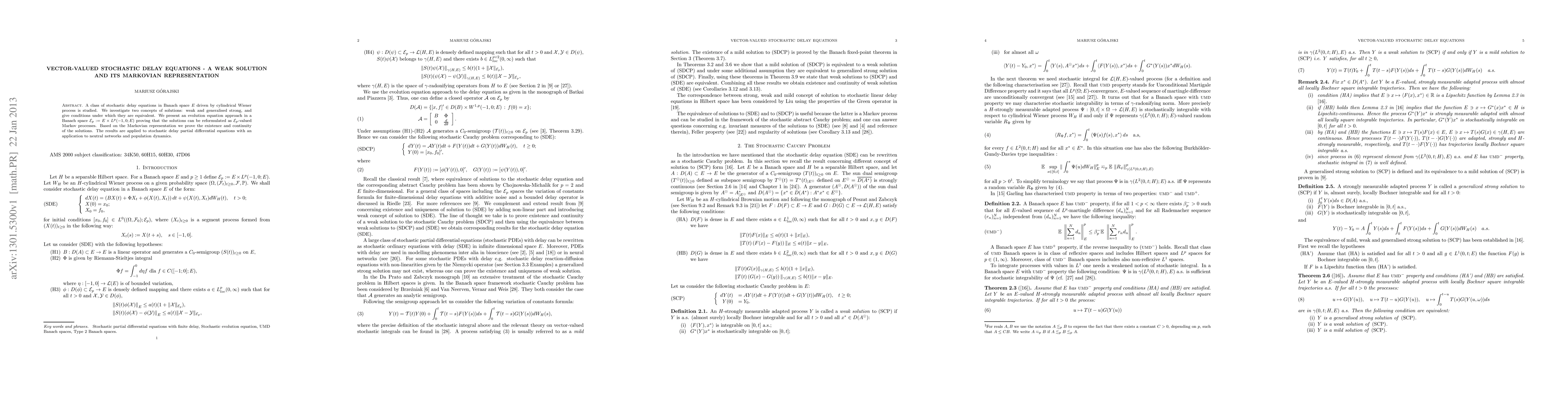 This paper explores stochastic delay equations in Banach space driven by a cylindrical Wiener process, comparing weak and generalised strong solutions. It demonstrates the equivalence of these solutions and reformulates them as $\Ep{p}$-valued Markov processes, proving their existence and continuity, with applications to stochastic delay partial differential equations and fields like neural networks and population dynamics.