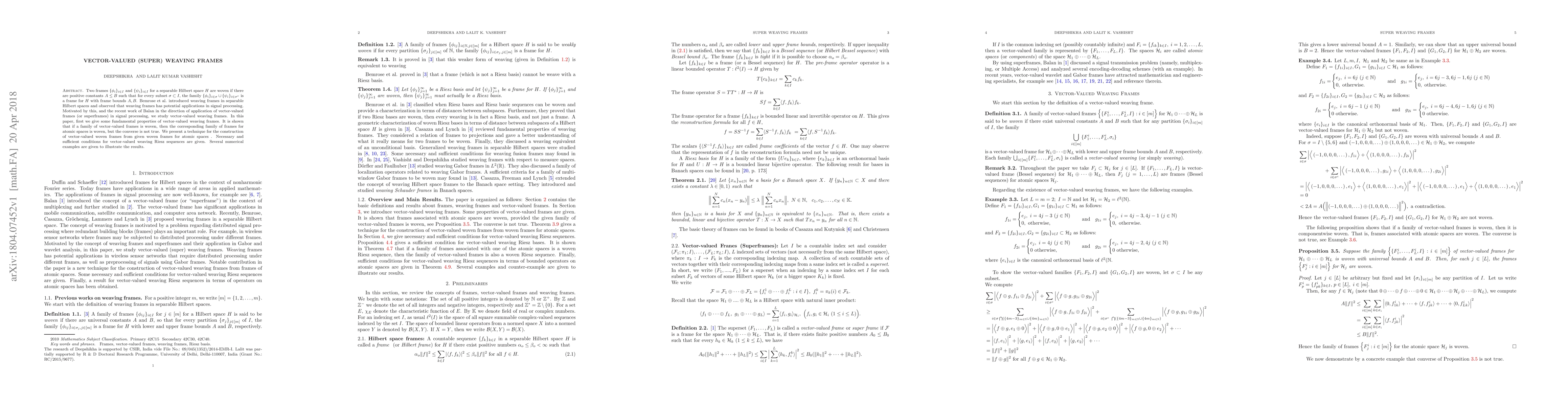 This paper introduces vector-valued weaving frames in Hilbert spaces, a concept that has potential applications in signal processing, and explores their fundamental properties and construction techniques.