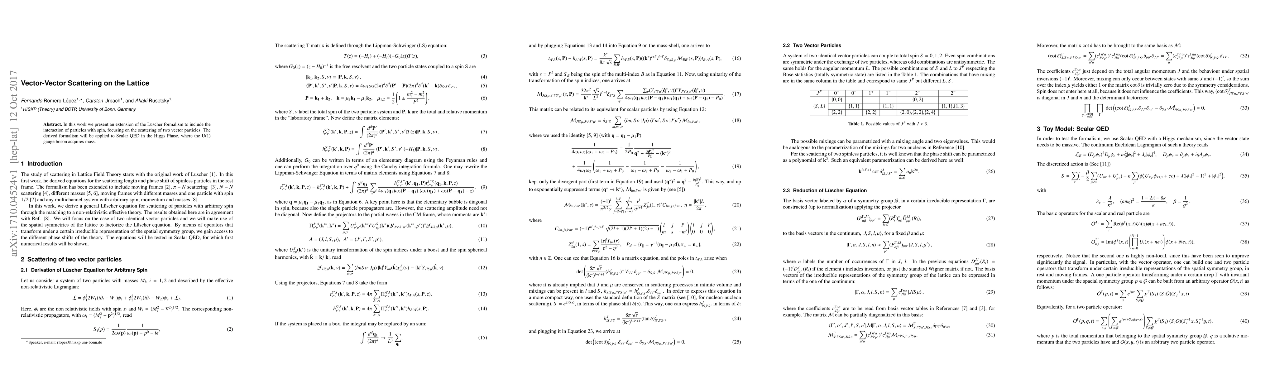 In this work we present an extension of the L\"uscher formalism to include the interaction of particles with spin, focusing on the scattering of two vector particles. The derived formalism will be applied to Scalar QED in the Higgs Phase, where the U(1) gauge boson acquires mass.