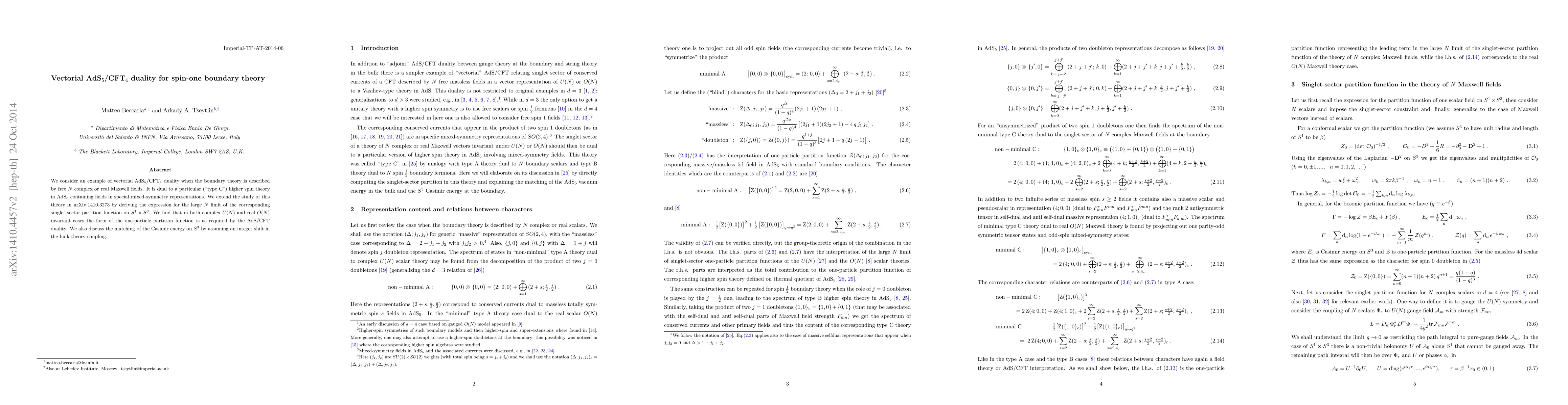 Summary: The paper explores vectorial AdS_5/CFT_4 duality for a boundary theory of N free Maxwell fields, showing it corresponds to a higher spin theory in AdS_5. It derives the large N limit of the partition function and confirms the matching of the Casimir energy, thus supporting the AdS/CFT correspondence.