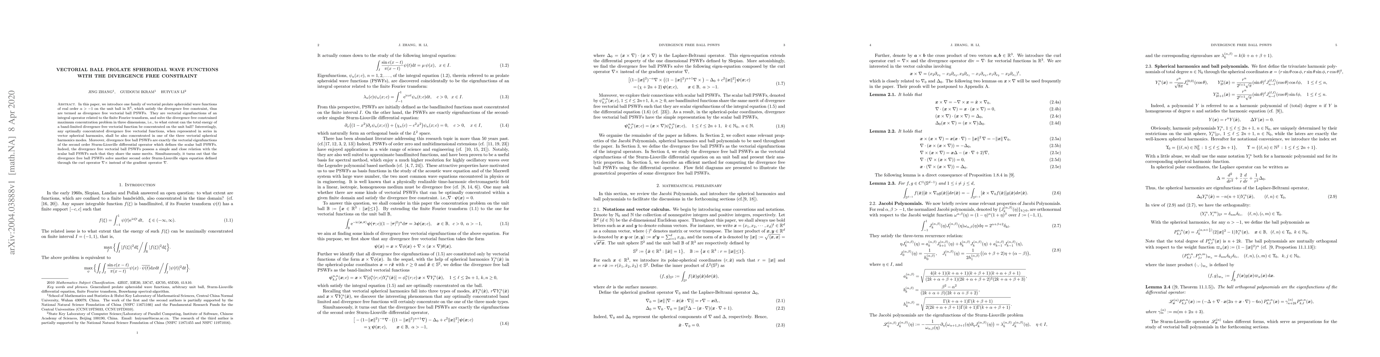 This paper introduces a family of divergence free vectorial prolate spheroidal wave functions (PSWFs) on the unit ball in $R^3$, which satisfy the divergence-free constraint and are eigenfunctions of an integral operator related to the finite Fourier transform. These functions solve the maximum concentration problem for band-limited divergence free vectorial functions in three dimensions.