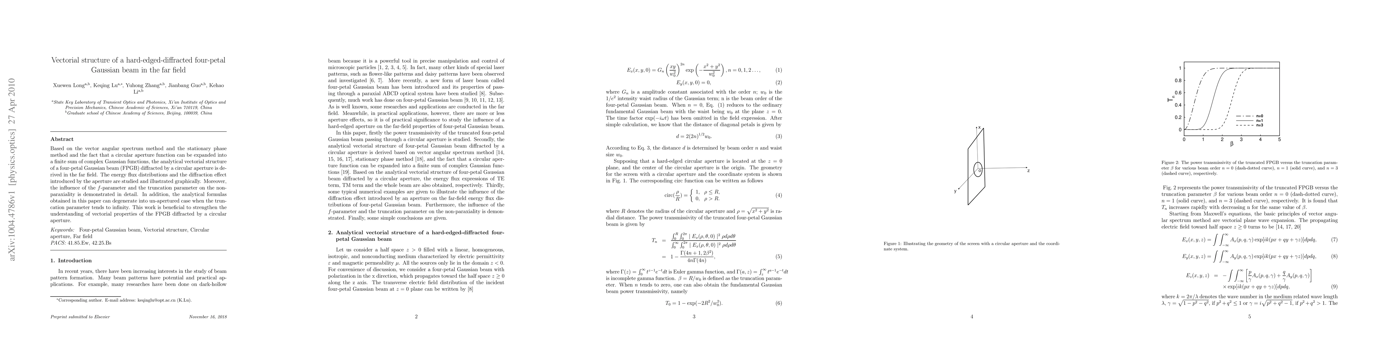 This paper derives the analytical vectorial structure of a four-petal Gaussian beam diffracted by a circular aperture using the vector angular spectrum method and stationary phase method. It examines the energy flux distributions and the influence of parameters on nonparaxiality, providing insights into the vectorial properties of the diffracted beam.