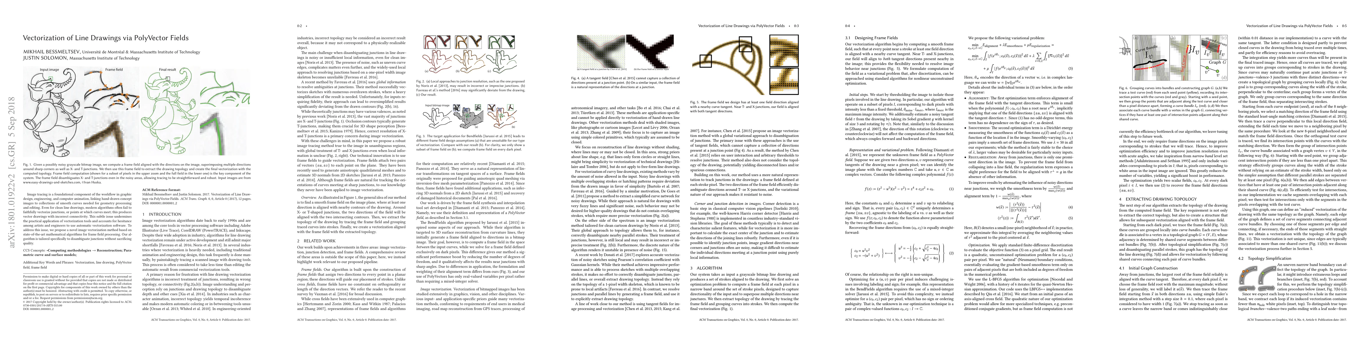 Image tracing is a foundational component of the workflow in graphic design, engineering, and computer animation, linking hand-drawn concept images to collections of smooth curves needed for geometry processing and editing. Even for clean line drawings, modern algorithms often fail to faithfully vectorize junctions, or points at which curves meet; this produces vector drawings with incorrect connectivity. This subtle issue undermines the practical application of vectorization tools and accounts for hesitance among artists and engineers to use automatic vectorization software. To address this issue, we propose a novel image vectorization method based on state-of-the-art mathematical algorithms for frame field processing. Our algorithm is tailored specifically to disambiguate junctions without sacrificing quality.